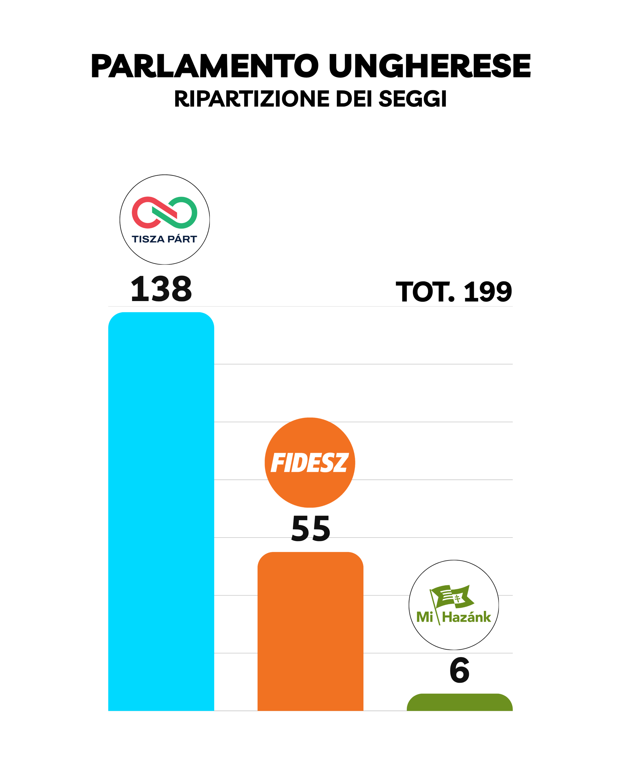 Tisza conquista i 2/3 dei seggi dell’Assemblea Nazionale, mandando Fidesz all’opposizione; la sinistra scompare.